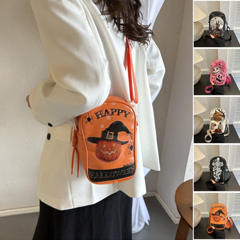 Halloween Graffiti Phone Bag Girls Funny Cartoon Pumpkin Ghost Bat Print Crossbody Bag For Women Mini Personality Creative Shoulder Bags